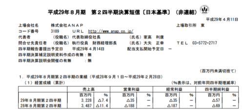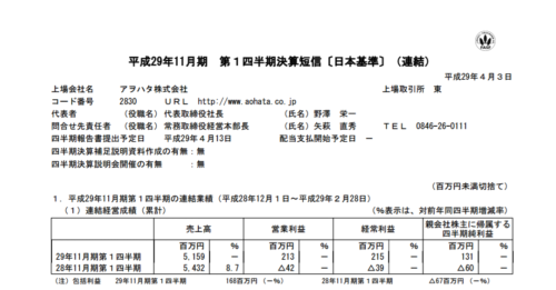 ■決算短信分析の株ブログ■ 2017/04/03 アヲハタ(2830) 2Q