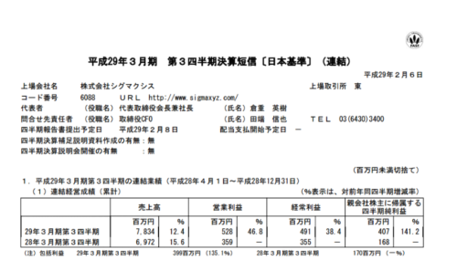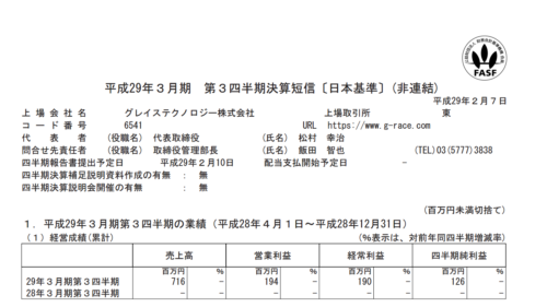 2017/02/07 グレイステクノロジー(6541) 3Q