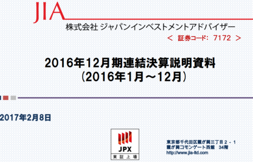 2017/02/08 ジャパンインベストメントアドバイザー(7172) 4Q