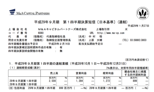 2017/01/27 M&Aキャピタルパートナーズ(6080) 1Q
