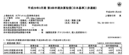 2017/01/25 カブドットコム証券(8703) 3Q