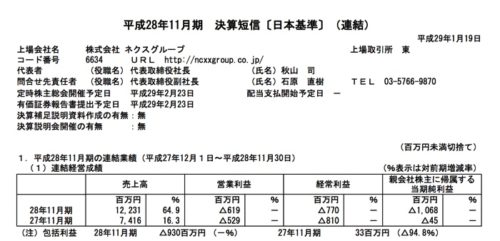 2017/01/19 ネクスグループ(6634) 4Q