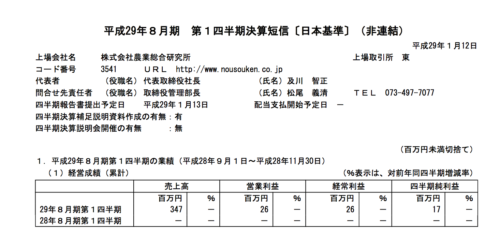 2017/01/20 農業総合研究所 (3541)1Q