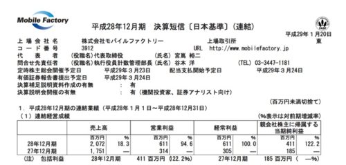 2017/01/20 モバイルファクトリー(3912) 4Q