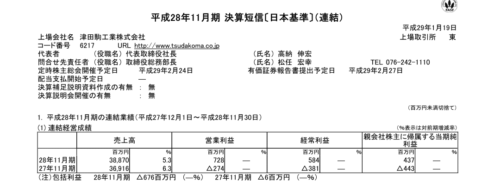 2017/01/20 津田駒工業(6217) 4Q