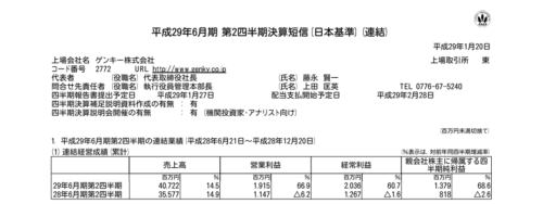 2017/01/20 ゲンキー(2772)2Q