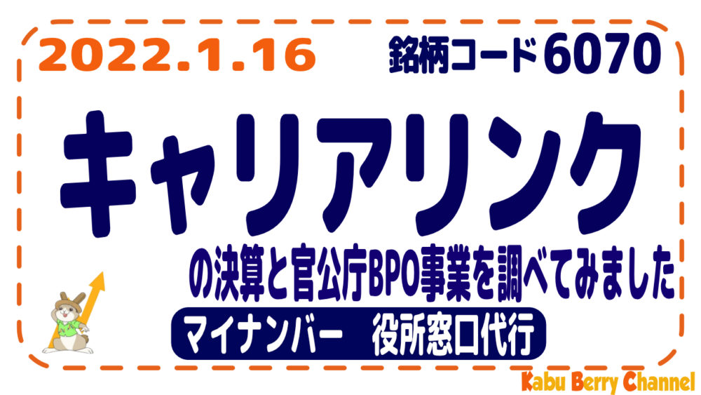 キャリアリンク(6070)の決算と官公庁のBPO事業について調べてみました