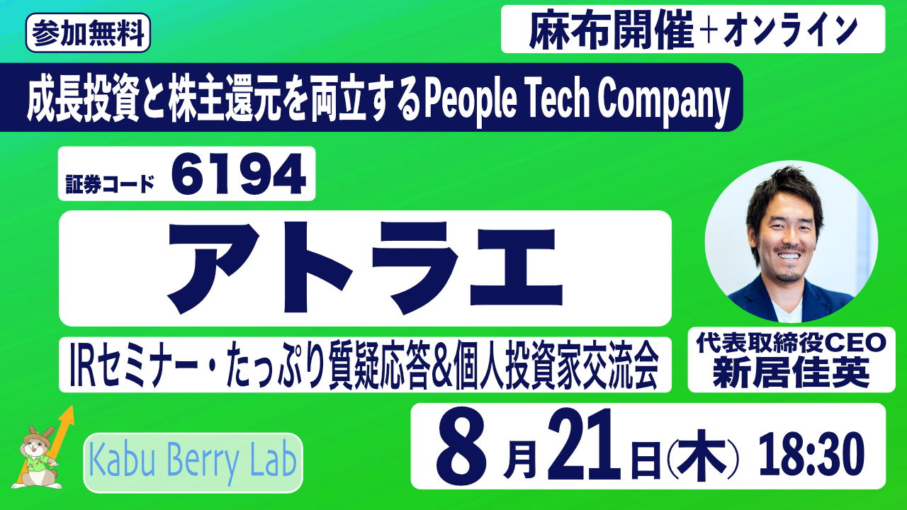 Kabu Berry Lab  アトラエ(6194)IRセミナー&個人投資家交流会 2025.8.21夜 麻布開催