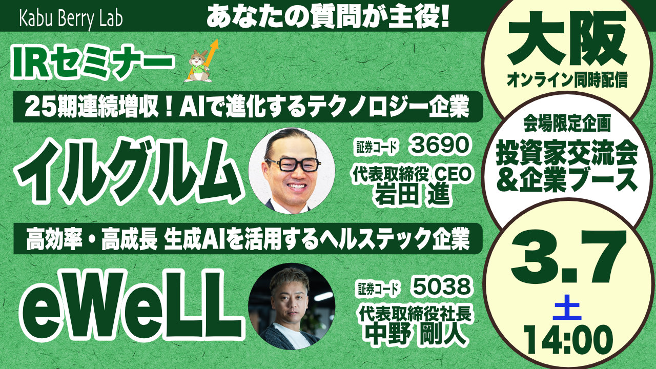 参加型IRセミナー「Kabu Berry Lab」の大阪+オンライン開催が決定しました。