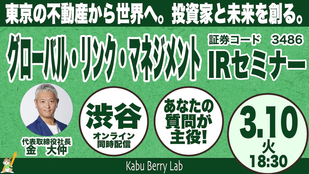 ■ グローバル・リンク・マネジメント(3486)IRセミナー HP https://www.global-link-m.com/