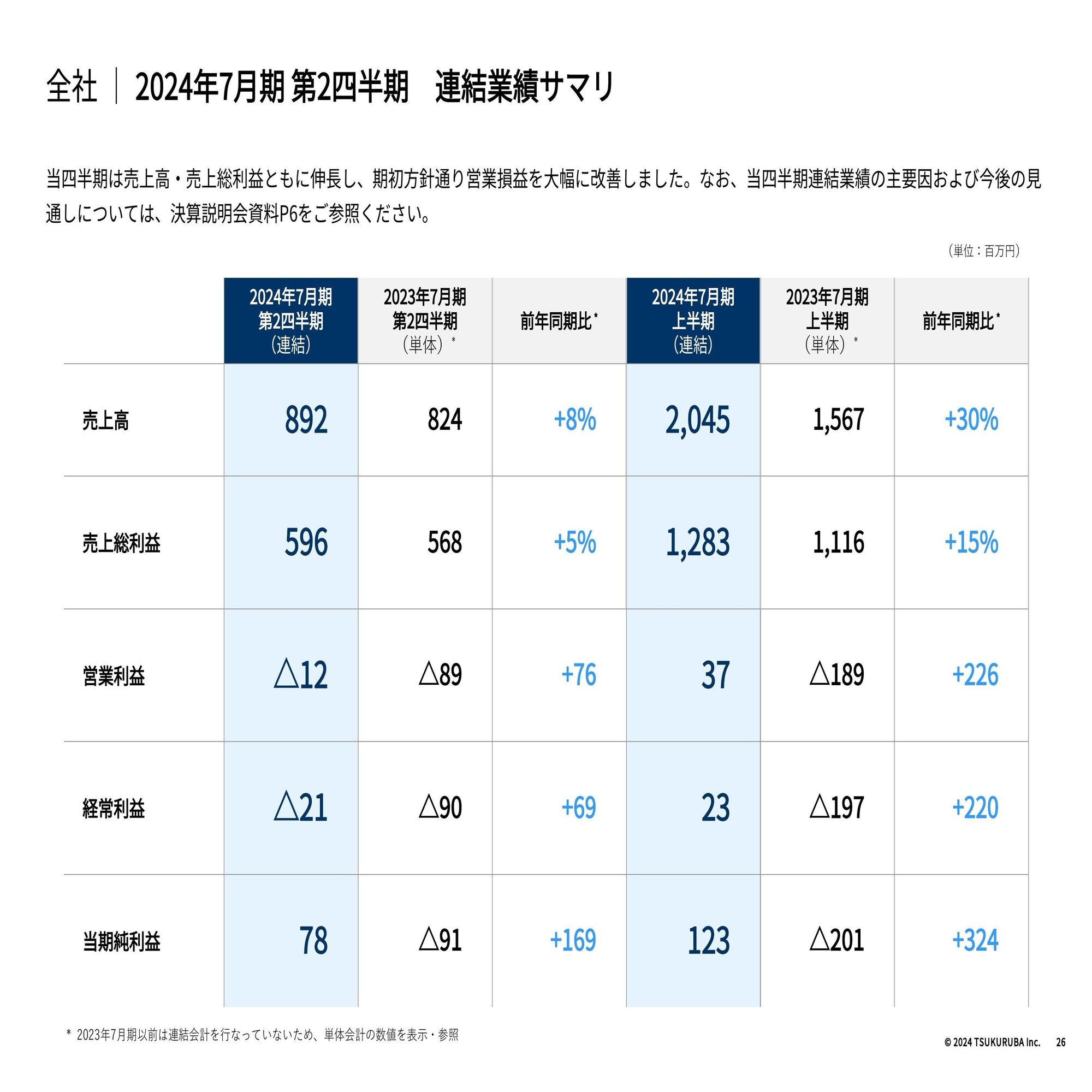 2024年7月期 第2四半期連結業績および通期連結業績予想