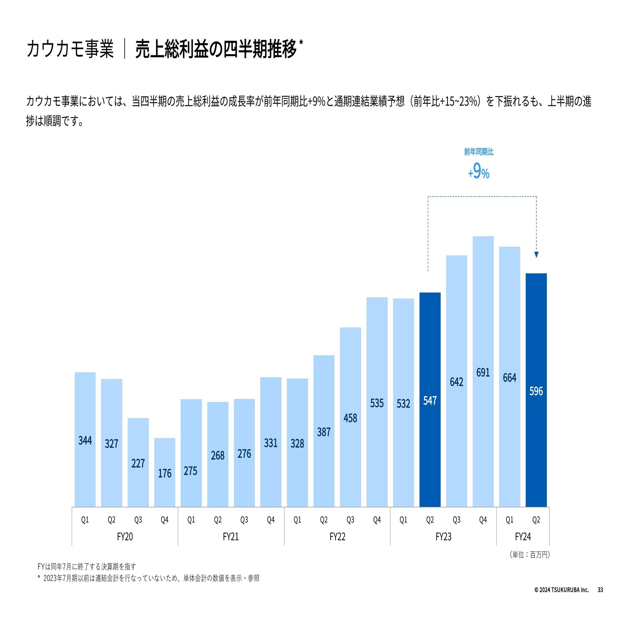 改めて売上総利益の進捗ですが、カウカモ事業の売上総利益の成長率は前年比10%程度、弊社の通期連結業績予想で見込んでいる成長率の範囲内に収まっているといったところも補足説明になります。