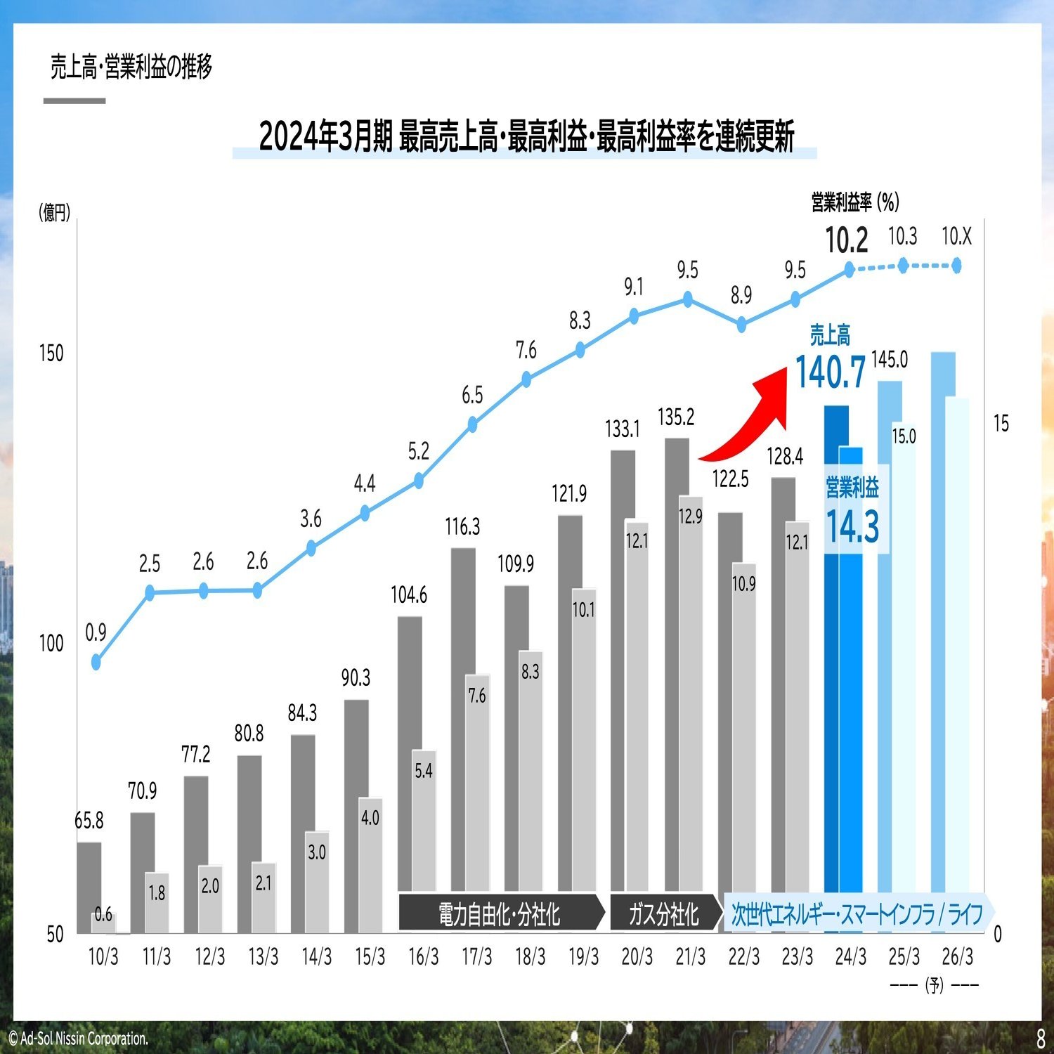 足元では、再び拡大フェーズで成長しており、2024年3月期は最高の売上高、最高の営業利益、営業利益率を更新することができています。