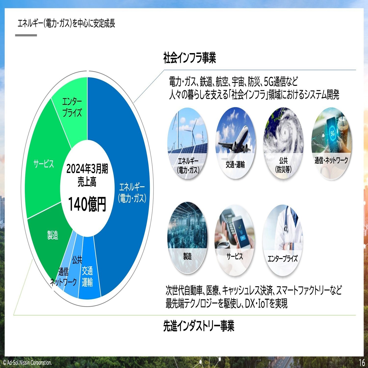 現在は7つの領域に特化した社会インフラを担っています。