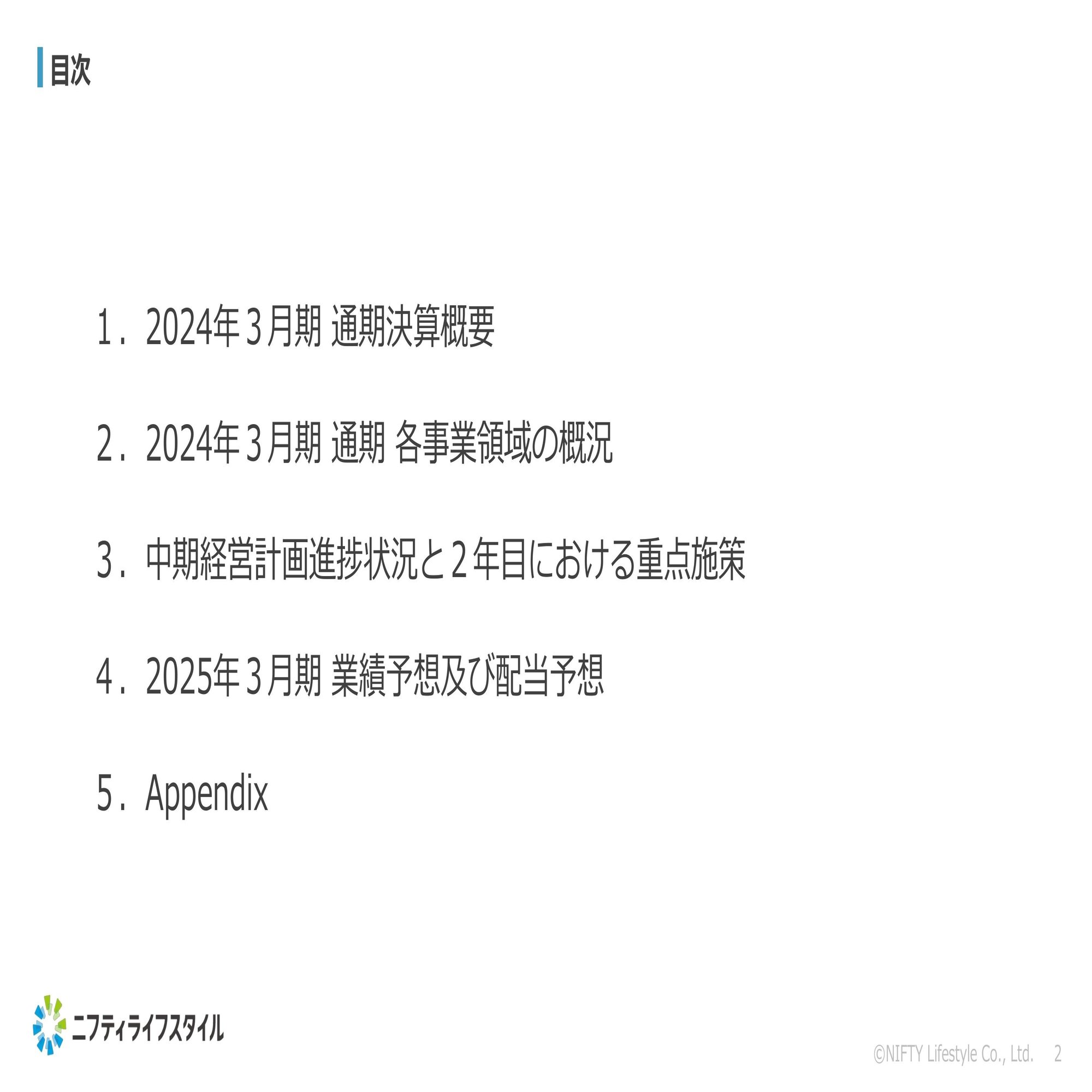 では、説明の方に入らせていただきます。本日のアジェンダはこのような形で、通期決算概要の方から最終的には今期の業績予想・配当予想まで、ウォークスルーでご説明をさせていただければと思っておりますので、よろしくお願いいたします。