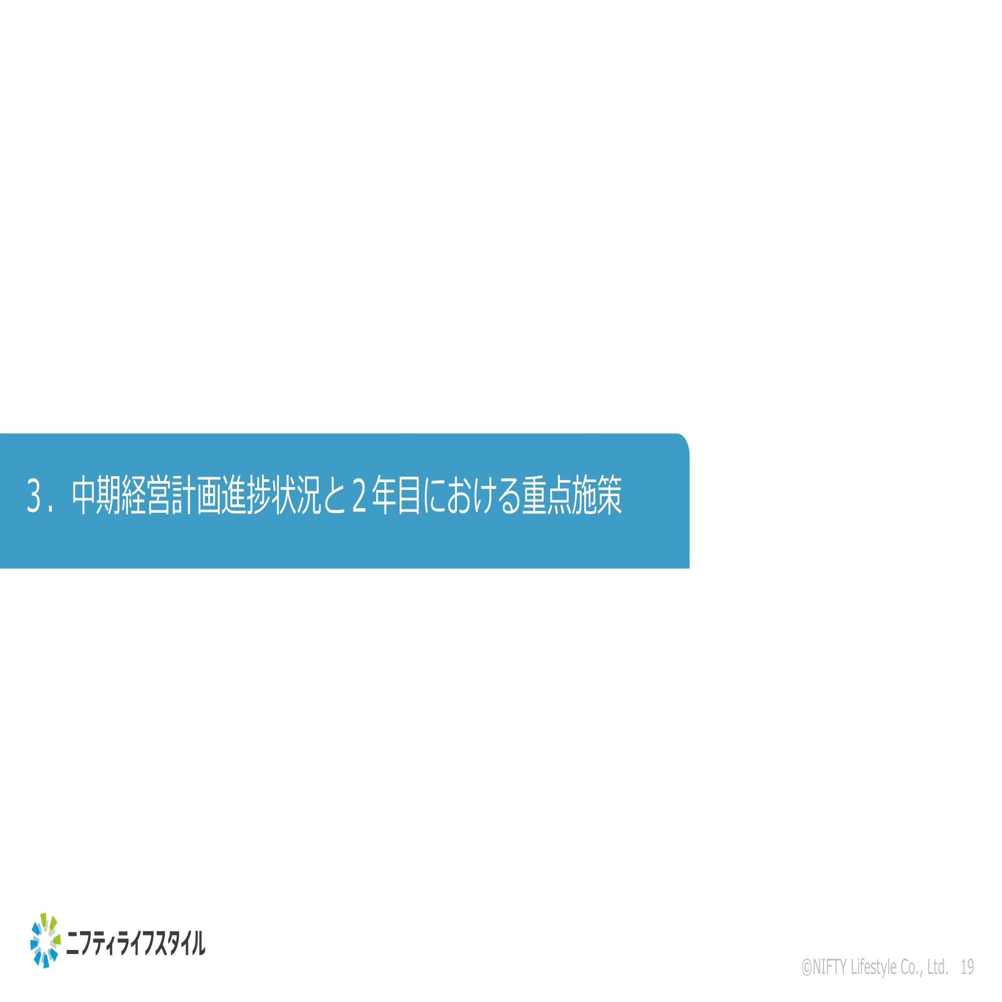 ここまでが概要詳細説明をさせていただいておりますが、ここから先は未来に目を移すということで、まず中期経営計画の進捗状況と2年目における重点施策について、全体的な要点を説明させていただければと思っております。