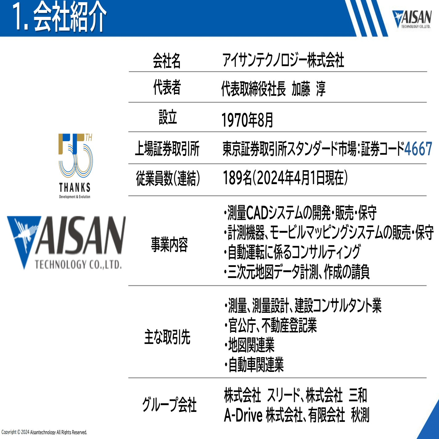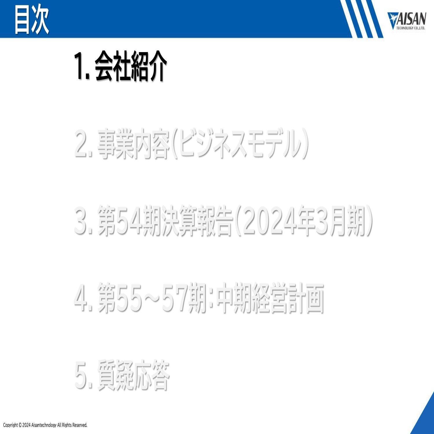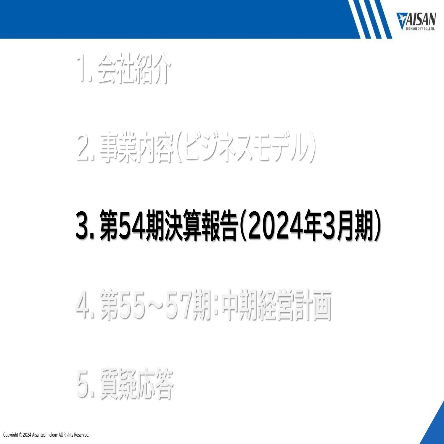 2024.6.3に開催致しましたアイサンテクノロジー(4667)IRセミナー&質疑応答の書き起こしになります。