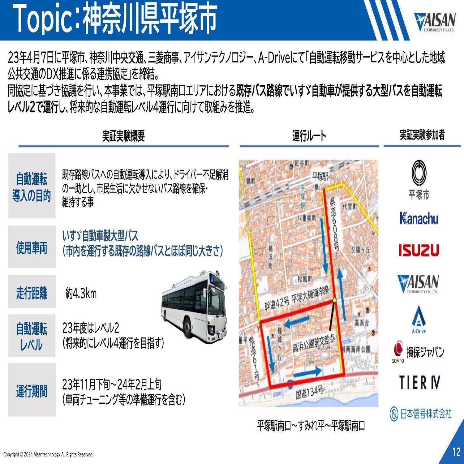 A. グループ会社のA-Driveを中心に、自治体や交通事業者に自動運転の社会実装を提案していくことが、伸びしろのあるところだと判断しています。一社だけでは実現できないので、保険会社、機材提供会社、当社のようなソリューション提供会社などをうまくコーディネートして提案していきます。