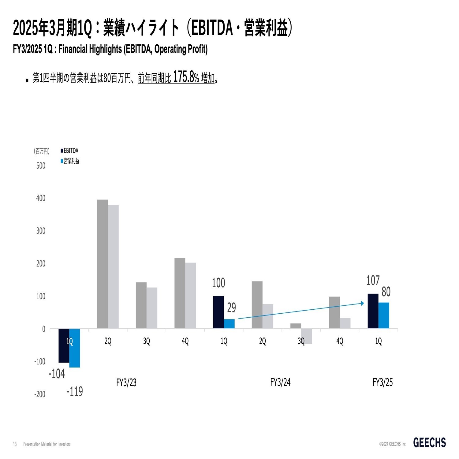 去年1年間ははまだゲーム事業がございましたので、第1四半期、第2四半期は黒字なのに第3四半期から赤字になるという、このようなボラティリティがございました。しかし、現在はゲーム事業が連結対象から外れましたので、昨年の第3四半期から徐々に右肩上がりになっていますが、今後この第1四半期、第2四半期以降もどんどん右肩上がりにしていこうと計画しております。グループの事業ポートフォリオの入れ替えがございましたので、利益改善され、今期この第1四半期から結果から出せております。
