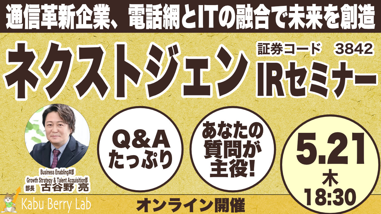 Kabu Berry Lab ネクストジェン(3842)IRセミナー 2026.5.21オンライン開催