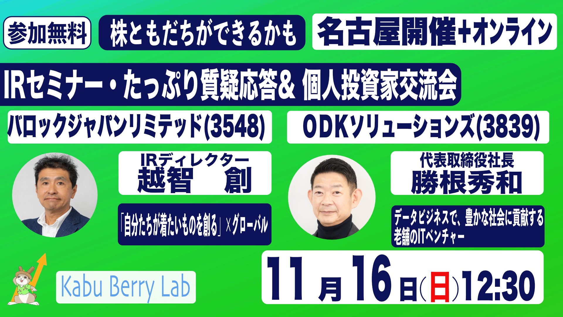 参加型IRセミナー「Kabu Berry Lab」の名古屋+オンライン開催が決定しました。